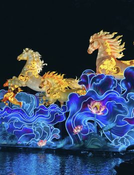 広州の元宵ランタンフェスティバルは、伝統的に広州文化公園や越秀公園などで開催され、色とりどりのランタン(提灯)やイルミネーションで飾られます。漢服(伝統衣装)パレードなどの行事もあり、家族連れで賑わう春の風物詩となります。近年では、伝統文化を取り入れた「国風」スタイルのランタンが、近代的なライトアップと共に雰囲気を盛り上げている。これらの「文化+テクノロジー」による春節を祝う光景は、人々が伝統的な春節の風習を大切に守りつつ、スマート未来への期待を抱いていることを反映しています。